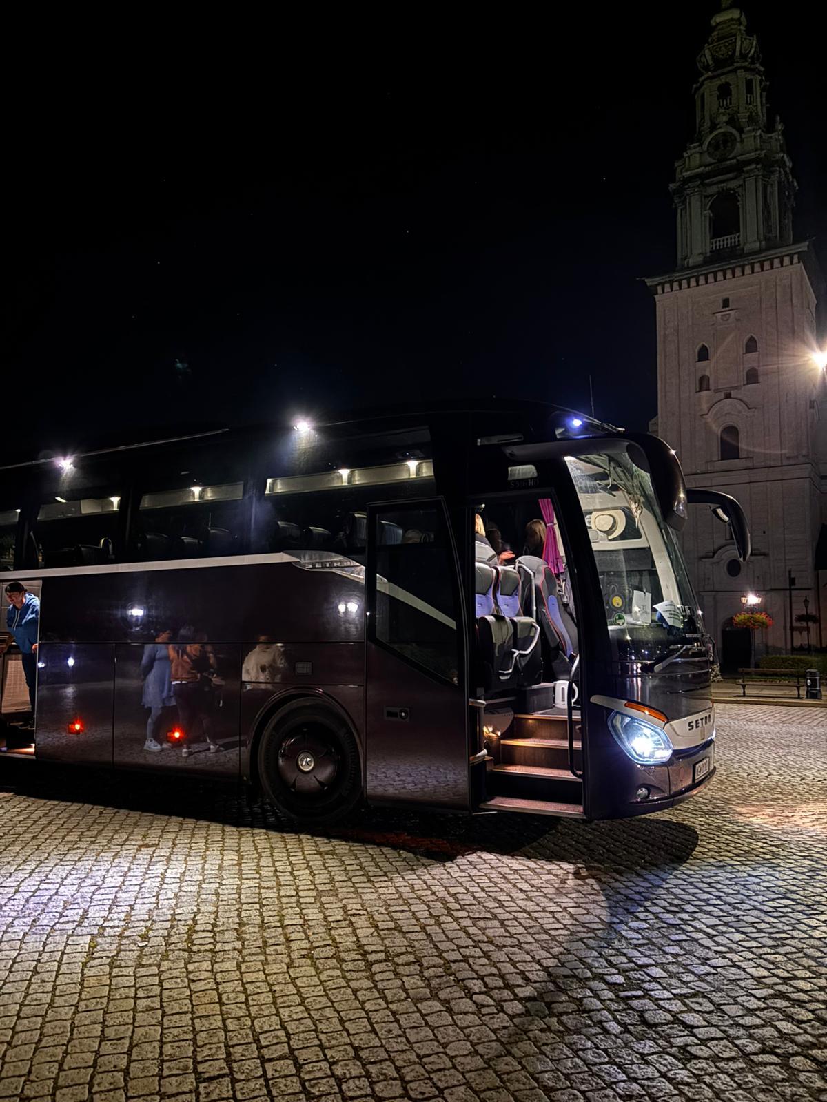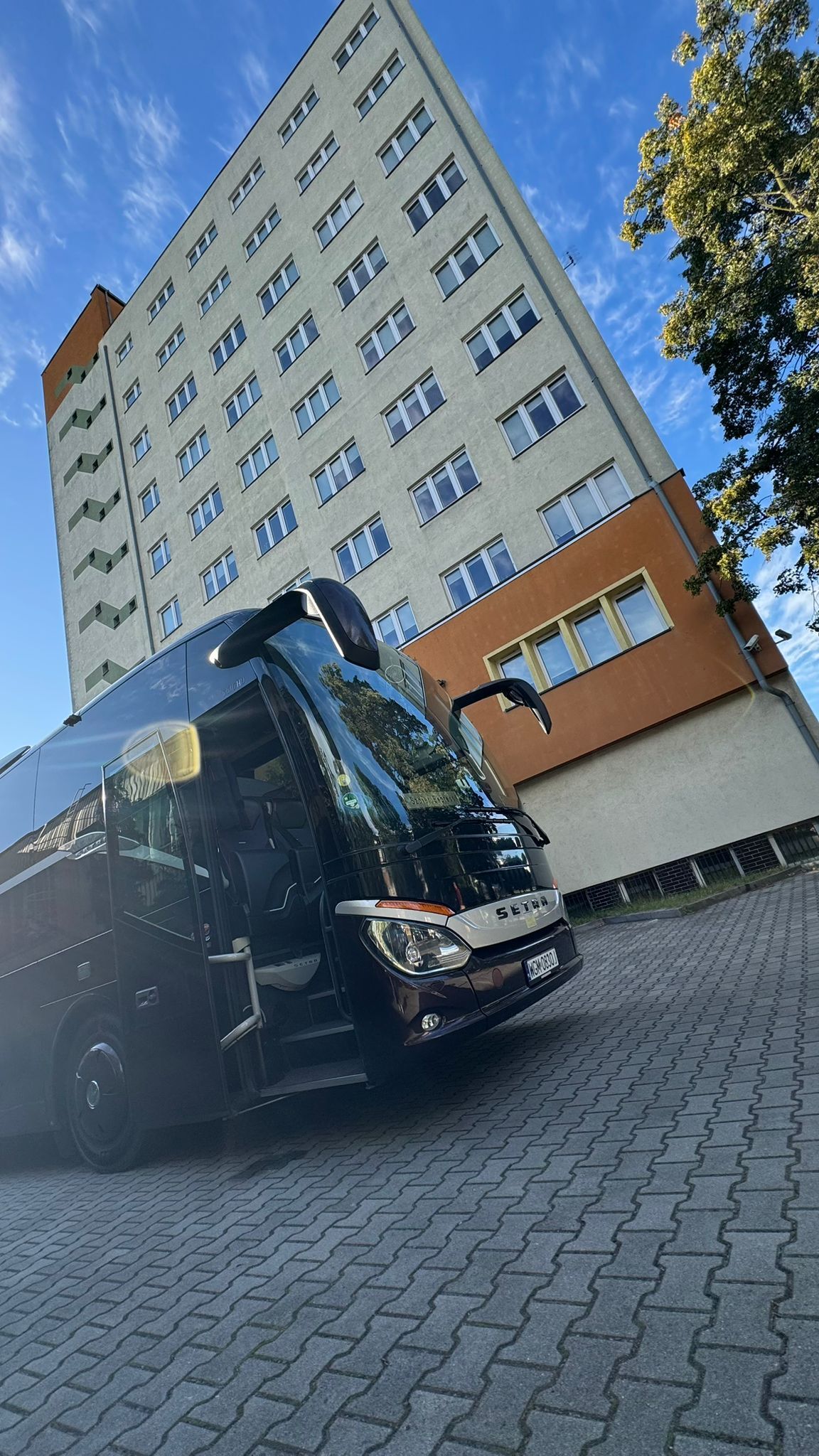 Nowoczesny autokar turystyczny marki Setra zapewnia komfortowe warunki podróży dla 53 osób, pilota oraz kierowcy. Autokar wyposażony jest w pasy bezpieczeństwa dla każdego pasażera, co jest bardzo istotne dla bezpiecznych przewozów dzieci. Ponadto w autokarze do dyspozycji mają Państwo: